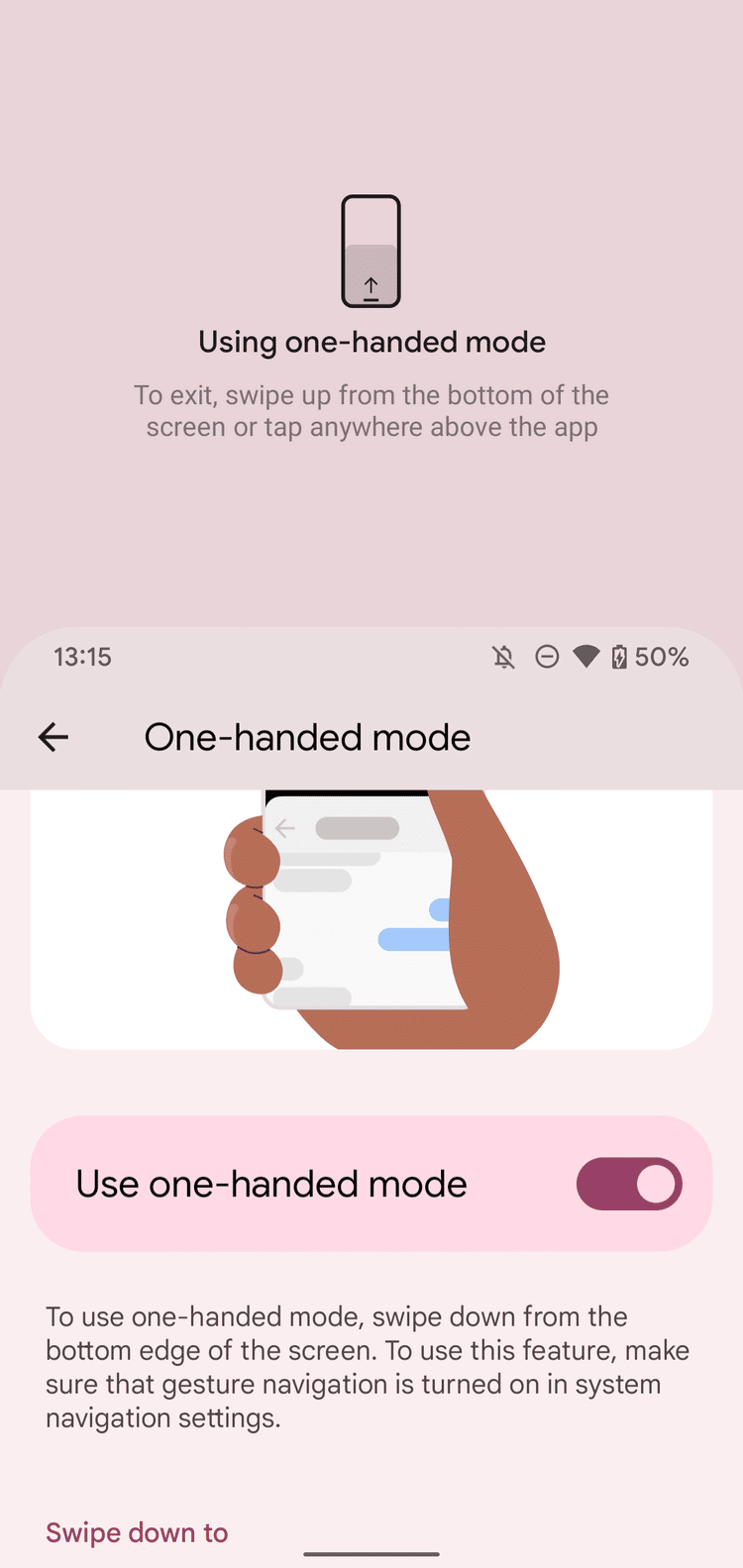 Tuy nhiên, chế độ một tay trên Android 12 không tốt bằng trên One UI. Khi bạn vuốt xuống từ thanh điều hướng trên điện thoại Samsung, toàn bộ giao diện màn hình sẽ được thu nhỏ lại vào một trong hai góc dưới màn hình. Trên Android 12, Google đã chọn cách tiếp cận tương tự như iPhone: giao diện bị kéo xuống một nửa.