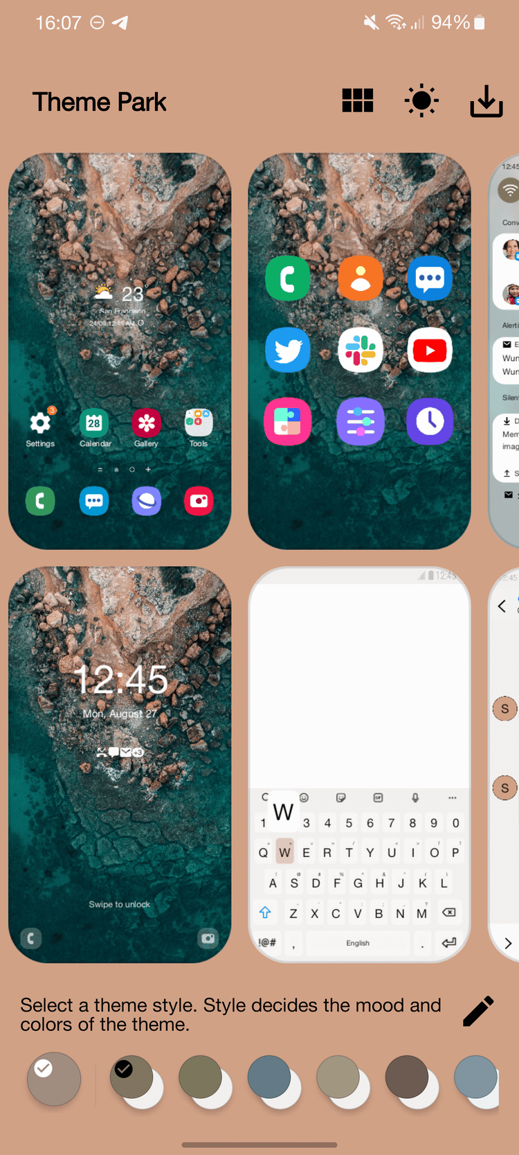Một trong những tính năng nổi bật của Material You là khả năng chọn màu từ hình nền rồi áp nó lên giao diện hệ điều hành và các ứng dụng tương thích. Nhưng với điện thoại Samsung, từ năm 2019, bạn đã có thể tải Theme Park – một module của Good Lock – để tùy biến chủ đề dựa trên hình nền.
