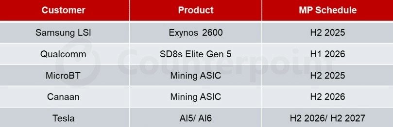 Sang nửa cuối năm 2026, Samsung dự kiến tiếp tục sản xuất chip ASIC 2nm cho Canaan – công ty từng tạo ra máy đào Bitcoin ASIC đầu tiên thế giới vào năm 2013. Cuối 2026 hoặc đầu 2027, hãng cũng sẽ bắt đầu giao chip AI6 tiến trình 2nm cho Tesla, phục vụ hệ thống tự lái FSD trên xe điện.