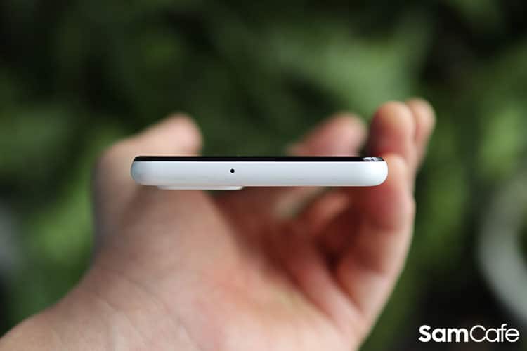 Cạnh phải của máy có cảm biến vân tay tích hợp vào phím nguồn cùng các phím tăng giảm âm lượng. Cạnh phải có duy nhất khe cắm thẻ SIM kép cùng thẻ nhớ microSD mở rộng với dung lượng tối đa 1TB. Cạnh dưới bao gồm loa ngoài, cổng USB Type-C, giắc tai nghe 3,5mm và loa thoại. Cạnh trên chỉ có duy nhất một loa thoại.