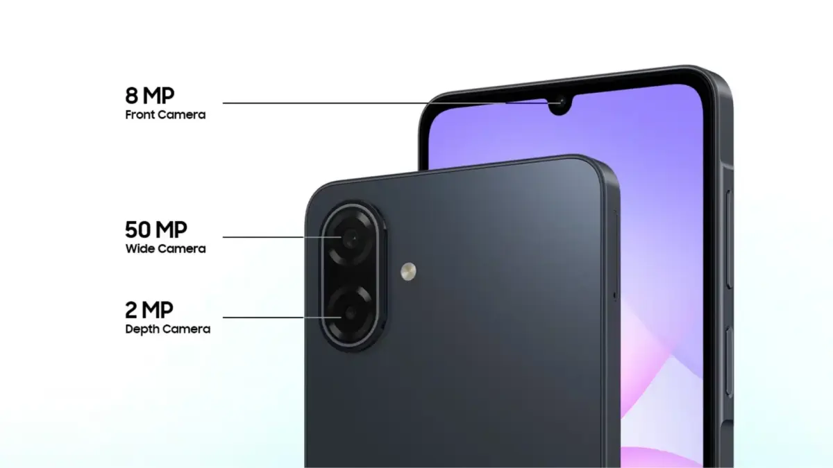 Ở khả năng chụp ảnh, Galaxy A07 5G có camera trước 8MP, quay video Full HD 30fps. Mặt lưng gồm camera chính 50MP khẩu độ f/1.8, quay Full HD 30fps, đi kèm camera phụ 2MP hỗ trợ chụp chân dung.