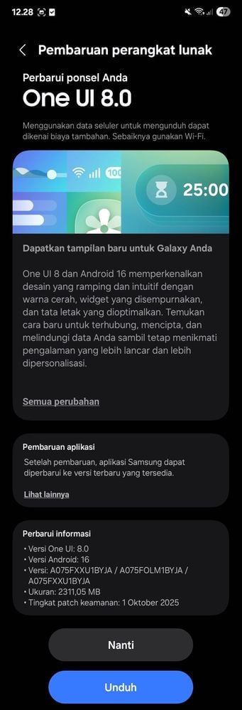 Bản cập nhật hiện đã được phát hành tại Indonesia, Malaysia, Thái Lan và Philippines, mang tên mã A075FXXU1BYJA, dung lượng khoảng 2,3GB, và tích hợp bản vá bảo mật tháng 10/2025, giúp cải thiện độ ổn định và an toàn hệ thống.