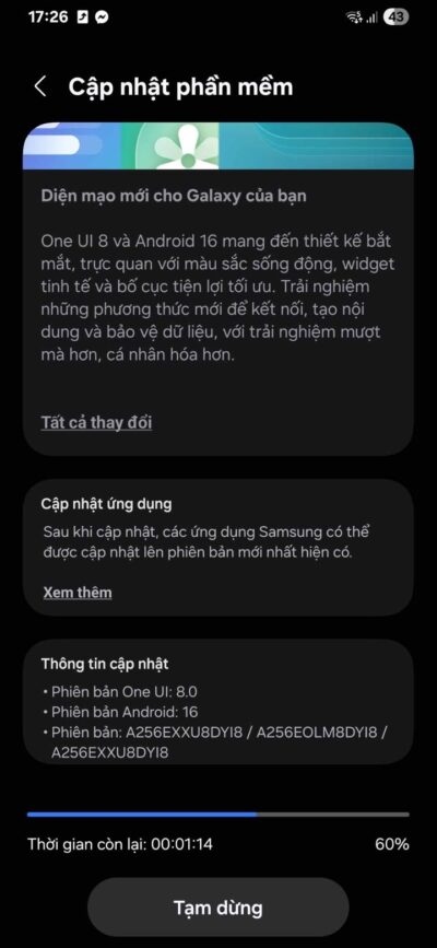 Galaxy A54 tại Việt Nam chính thức cập nhật One UI 8