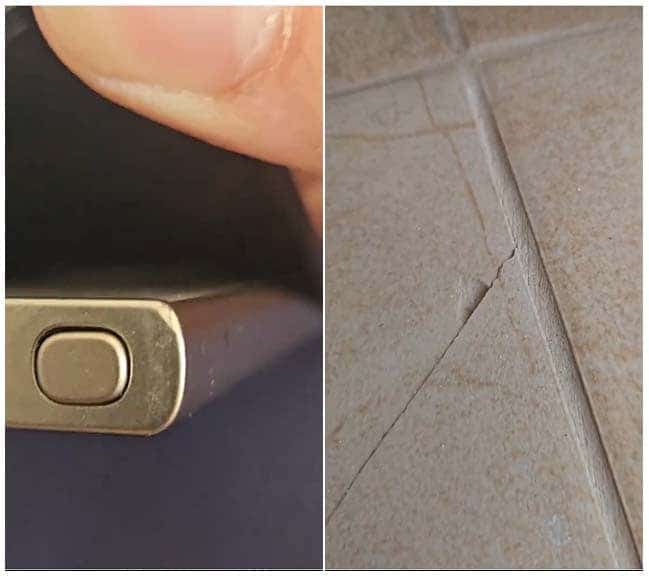 Theo video, chiếc Galaxy S24 Ultra tuột khỏi tay người dùng, rơi xuống sàn và va mạnh ở phần góc. Trong khi mặt gạch chịu không nổi lực tác động và bị rạn nứt, chiếc máy chỉ xuất hiện một vết lõm nhỏ trên khung viền. Ốp bảo vệ cũng góp phần giúp thiết bị tránh khỏi hư hại nặng hơn.