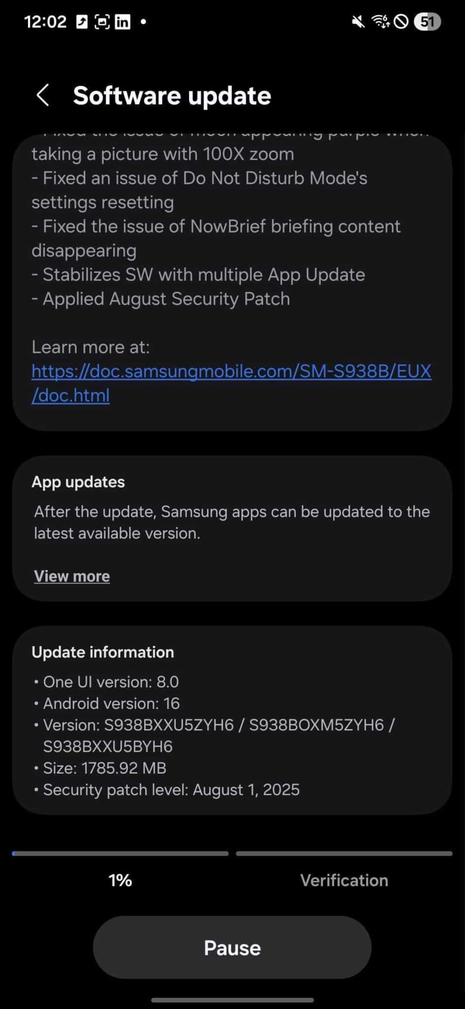 Bản cập nhật mới hiện có sẵn cho Galaxy S25, Galaxy S25+ và Galaxy S25 Ultra tại Ấn Độ, Đức, Anh và Mỹ. Phiên bản firmware kết thúc bằng mã ZYH6 với dung lượng khoảng 1,78GB, đồng thời tích hợp bản vá bảo mật tháng 8/2025.