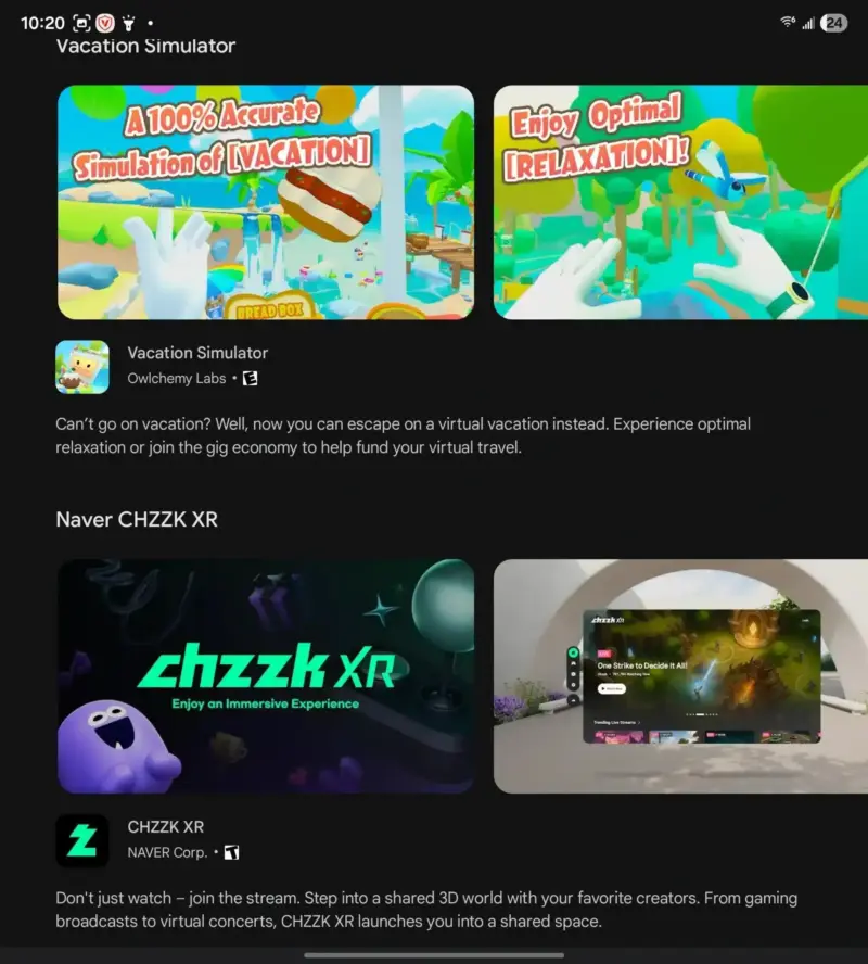 Theo tài khoản X (Twitter) @WorkaholicDavid, hàng loạt ứng dụng và game tối ưu cho môi trường XR đã xuất hiện trên Play Store, cho thấy hệ sinh thái nội dung dành cho Galaxy XR đang dần hình thành. Các hình ảnh chụp màn hình tiết lộ nhiều tựa game và ứng dụng tương tác đến từ nhiều nhà phát triển khác nhau – từ giải trí, sáng tạo đến mô phỏng không gian ảo.