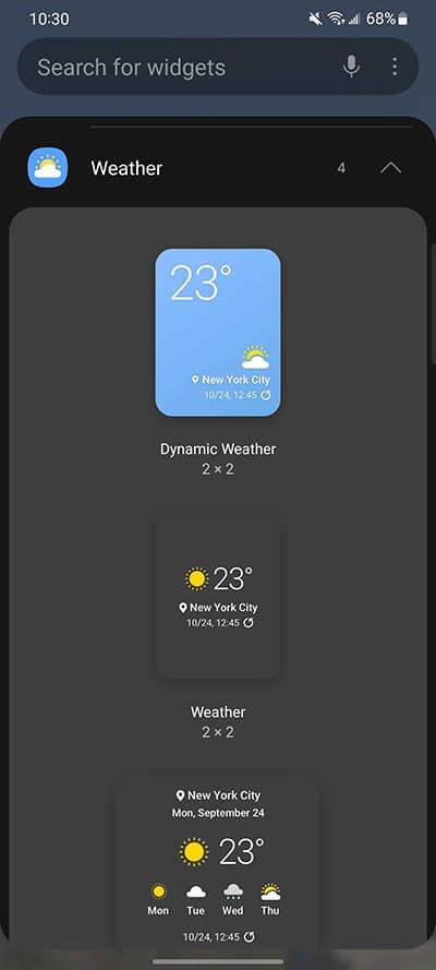 Tiện ích này cũng hiển thị vị trí hiện tại, thời gian được làm mới lần cuối và một nút để làm mới thông tin theo cách thủ công. Nó sử dụng hoạt ảnh mới của Samsung đã được giới thiệu với One UI 4.0. Tất nhiên bạn có thể thay đổi kích thước của tiện ích con mới, tùy thuộc vào sở thích của mình.