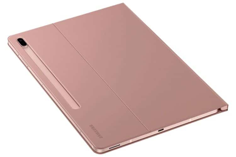 Hình ảnh render của Galaxy Tab S7 Lite, hay cũng có thể là Galaxy S7+ Lite, đã bị rò rỉ ngày hôm qua cho thấy mẫu máy tính bảng mới này sẽ có màu hồng (hoặc vàng hồng) cùng với bộ phụ kiện Book Cover và S Pen có màu sắc tương đương.