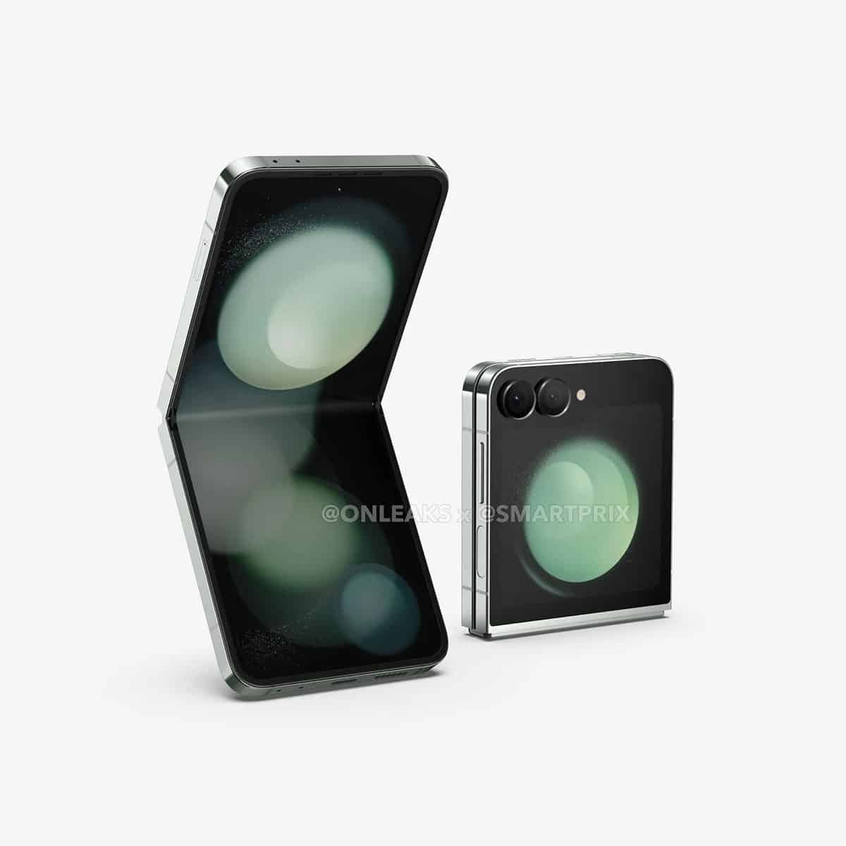 Chuyên gia rò rỉ @OnLeaks ngày hôm nay đã bắt tay với SmartPrix để phát hành loạt ảnh đầu tiên của Galaxy Z Flip 6. Chiếc điện thoại này khá giống với Galaxy Z Flip 5, cả về màu sắc trong kết xuất. Điều này cũng dễ hiểu bởi vì nâng cấp lớn về thiết kế đã được áp dụng vào năm ngoái. Thiết bị vẫn có các mặt được làm phẳng, màn hình ngoài dạng thư mục cùng cụm máy ảnh kép được xếp ngang.