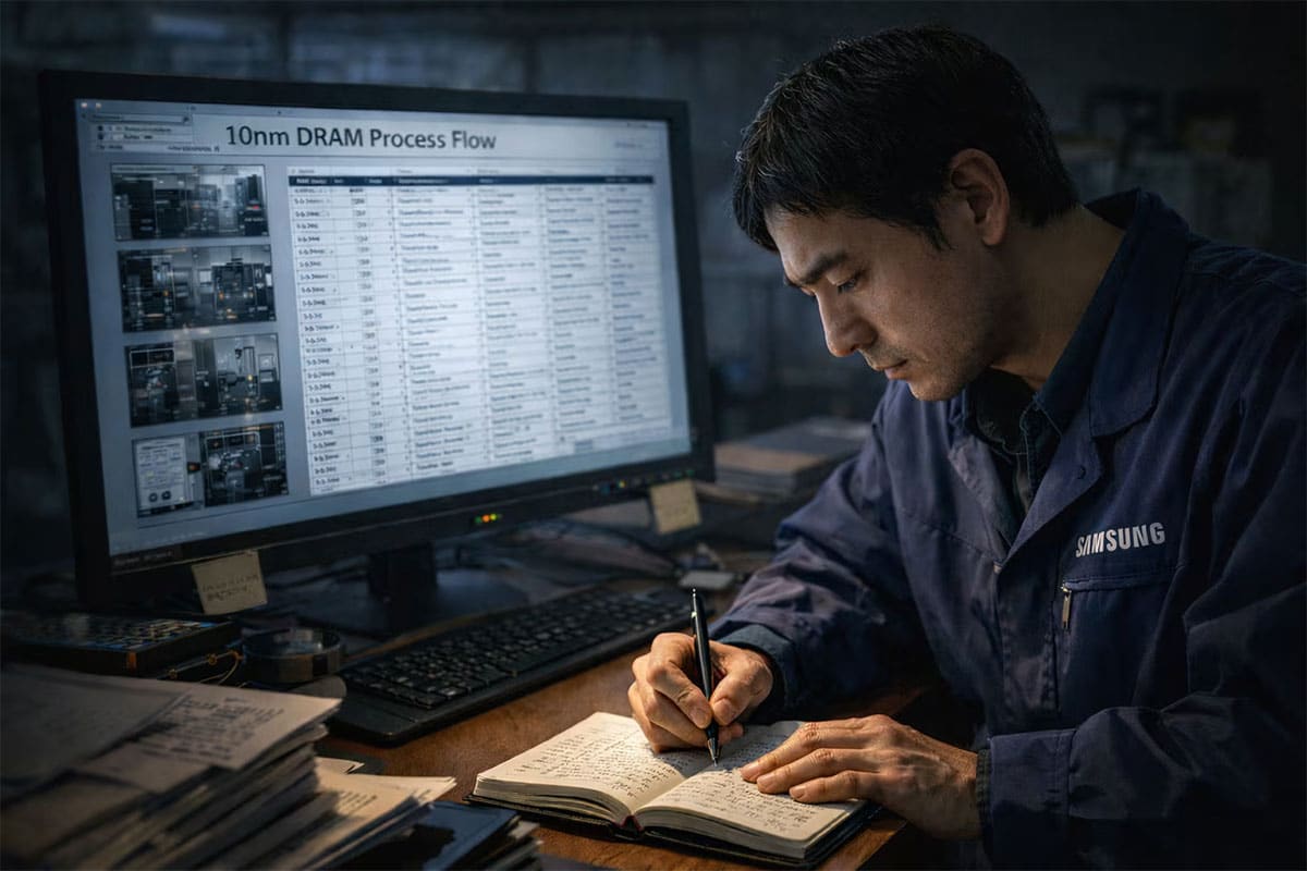 Theo hồ sơ vụ án, trong một đêm làm việc muộn tại khu nghiên cứu bán dẫn của Samsung Electronics, nghiên cứu viên ký hiệu A đã tiếp cận tài liệu “thông tin quy trình DRAM cấp 10 nanomet”. Đây là bộ tài liệu mô tả quy trình sản xuất DRAM với gần 600 công đoạn, bao gồm tên từng bước, thiết bị sử dụng và các thông số vận hành chi tiết. Trong ngành bán dẫn, tập tài liệu này được gọi là PRP (Process Recipe Plan) và được xem là phần cốt lõi nhất của công nghệ sản xuất bộ nhớ, không thể tái tạo trong thời gian ngắn chỉ bằng tiền hay tuyển dụng nhân sự.