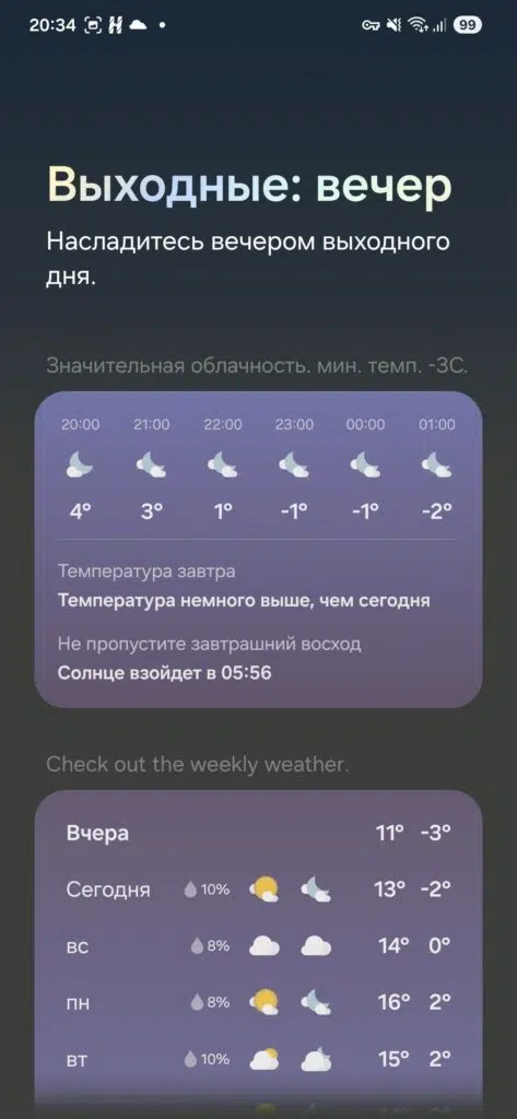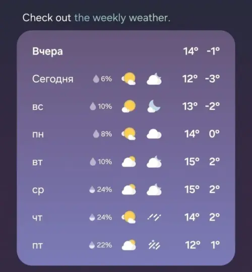 Với One UI 9, Samsung có thể bổ sung một thay đổi đáng chú ý là hiển thị dự báo thời tiết cả tuần ngay trong Now Brief. Thay vì chỉ xem được thời tiết trong ngày như hiện tại, người dùng có thể theo dõi toàn bộ dự báo trong tuần ngay tại một giao diện duy nhất. Điều này giúp tiết kiệm thao tác, đồng thời mang lại trải nghiệm trực quan hơn.