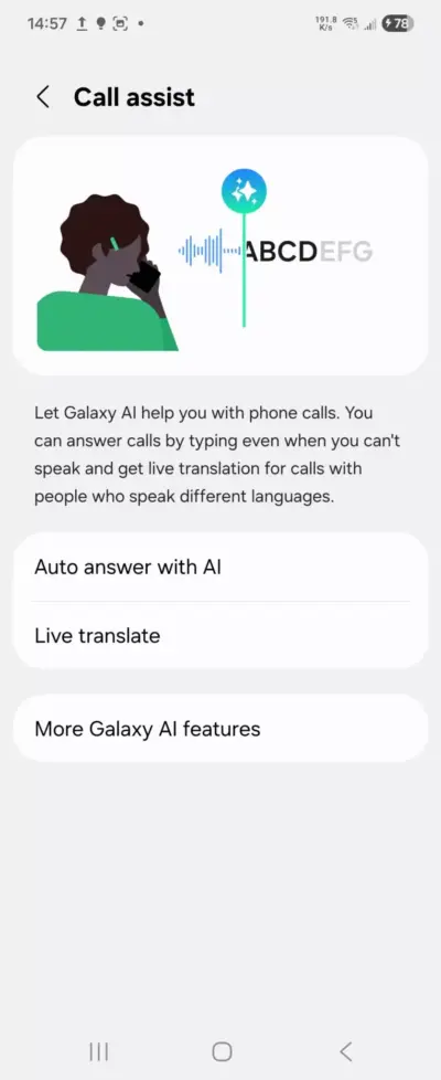 Theo thông tin được tiết lộ, Auto Answer with AI sẽ là phần mở rộng của công cụ Call Assist, vốn đã tích hợp nhiều tính năng thông minh như Live Translate (dịch trực tiếp khi đang gọi) hay Text Call (trả lời cuộc gọi bằng tin nhắn). Với nâng cấp mới, người dùng có thể để AI thay mình nhận cuộc gọi, trò chuyện với người ở đầu dây bên kia và ghi lại toàn bộ nội dung cuộc trò chuyện dưới dạng bản dịch hoặc bản ghi văn bản. Bạn cũng có thể can thiệp bất cứ lúc nào để gửi phản hồi thủ công hoặc xem lại nội dung cuộc gọi sau đó – cực kỳ tiện lợi trong các tình huống bận rộn hoặc khi không muốn bắt máy.