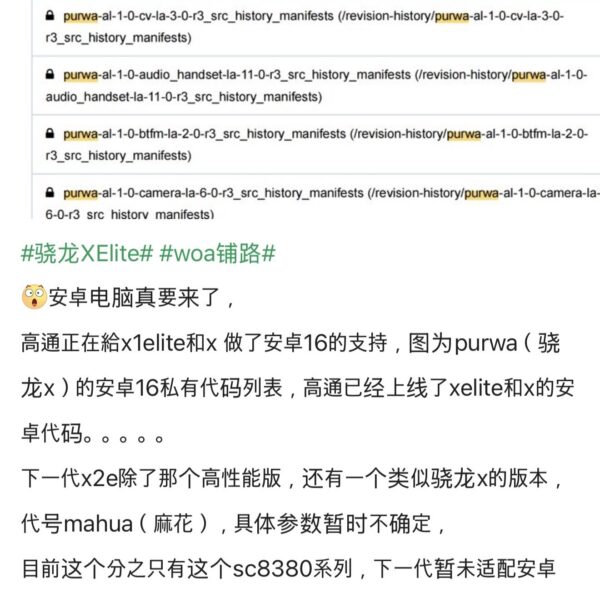 Theo chia sẻ từ @Jukanlosreve, Qualcomm đã bổ sung đoạn mã cần thiết vào danh sách mã riêng của Android 16, cho phép các chip thuộc dòng Snapdragon X (tên mã Purwa) vận hành hệ điều hành Android. Trước đó, các chip này chỉ hỗ trợ Windows 11 trên nền ARM.