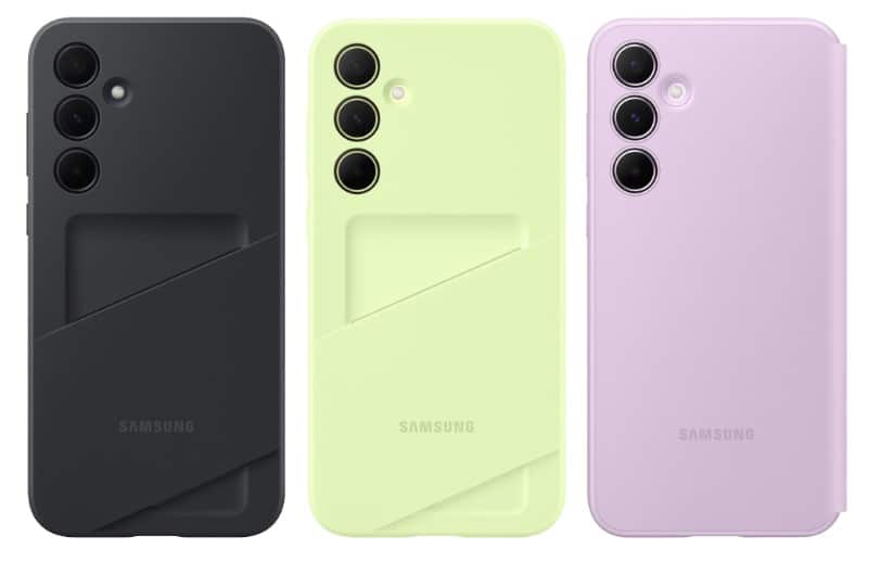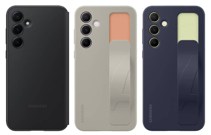Cả Galaxy A55 5G và A35 5G đều có thể đi kèm với tùy chọn ốp bảo vệ màn hình hai mảnh, ốp lưng Standing Grip và ốp Smart View Wallet. Từ hình ảnh kết xuất, có thể thấy ốp lưng Smart View Wallet của dòng A sẽ có thêm một khe ở mặt sau để thuận tiện đựng thẻ hoặc tiền mặt. Nó có thiết kế khác so với ốp lưng có khe đựng thẻ ở mặt trong tấm bảo vệ màn hình của Galaxy S24 Ultra.