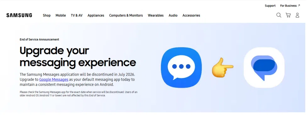 Theo thông tin công bố, Samsung Messages sẽ ngừng hỗ trợ từ tháng 7 năm 2026. Ứng dụng vẫn có thể hoạt động trên các thiết bị cũ chạy Android 11 trở xuống, nhưng sẽ không còn được ưu tiên phát triển. Trong khi đó, các tính năng nhắn tin hiện đại như RCS đã gắn chặt với hệ sinh thái của Google, khiến việc duy trì một nền tảng riêng không còn cần thiết.