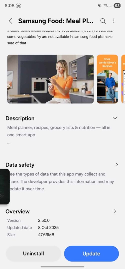 Bản cập nhật Samsung Food 2.50.0, hiện đã có trên Galaxy Store và Google Play, mang đến những cải tiến đáng chú ý cho tính năng Recipe Builder. Người dùng giờ đây có thể nhập nguyên liệu nhanh hơn nhờ tự động gợi ý tên nguyên liệu (auto-complete), giúp quá trình tạo công thức trở nên trực quan và tiết kiệm thời gian hơn.