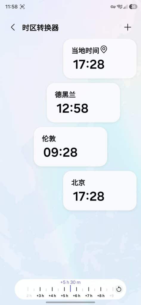 Giờ thế giới nhận được nâng cấp lớn nhất về mặt chức năng. One UI 8.5 bổ sung bản đồ thế giới làm hình nền, cùng tùy chọn chuyển đổi bố cục thẻ khi xem nhiều thành phố. Người dùng cũng có thể dùng thanh trượt múi giờ mới để kéo qua các thời điểm trong ngày và xem nhanh sự chênh lệch thời gian giữa các thành phố.
