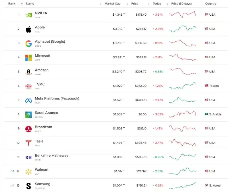 Hiện toàn cầu mới chỉ có 13 công ty từng vượt mốc 1.000 tỷ USD vốn hóa. Con số này được tính bằng cách nhân giá cổ phiếu với tổng số lượng cổ phiếu đang lưu hành.