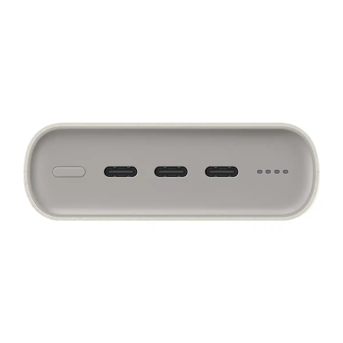 Phần thân của bộ sạc được sơn màu be với các cạnh được bo tròn, tạo cảm giác cầm nắm thoải mái. Nó được làm bằng vật liệu tái chế với chứng nhận UL về mức độ thân thiện với môi trường.