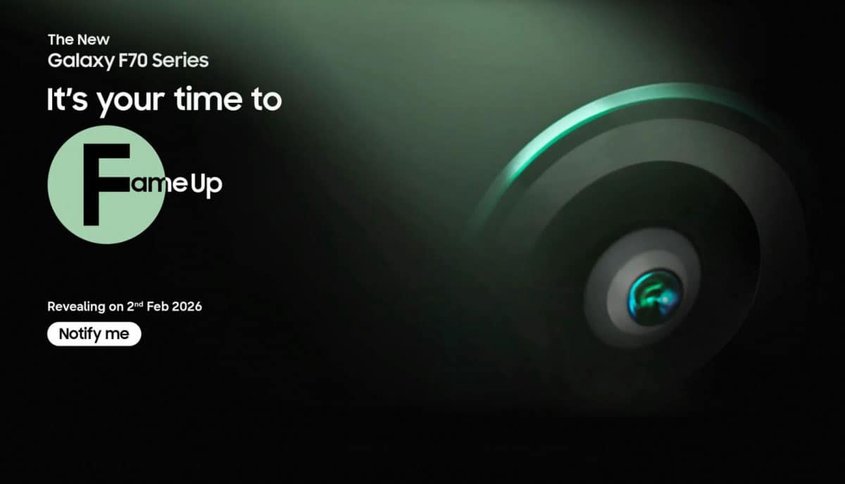 Samsung vừa xác nhận sẽ ra mắt dòng Galaxy F70 mới tại thị trường Ấn Độ, hướng tới nhóm người dùng trẻ yêu thích chụp ảnh và sáng tạo nội dung trên mạng xã hội. Hãng dự kiến công bố chi tiết mẫu máy đầu tiên trong dòng sản phẩm này vào ngày 2 tháng 2 năm 2026, tuy nhiên thời điểm mở bán chính thức vẫn chưa được tiết lộ.