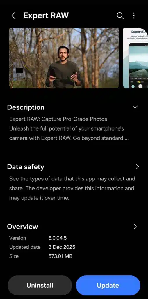 Samsung đồng thời tung bản cập nhật cho Expert RAW, ứng dụng chụp ảnh chuyên nghiệp dành cho dòng flagship Galaxy. Ứng dụng này vốn mở khóa nhiều tính năng chuyên sâu thường không có trong chế độ chụp mặc định. Theo người dùng X @Wvisioncreation, bản cập nhật mới mang đến Auto mode được tinh chỉnh tốt hơn, khả năng xử lý ảnh nhất quán hơn, thời lượng pin cải thiện, thiết bị mát hơn và giao diện mượt mà hơn.
