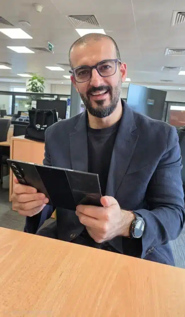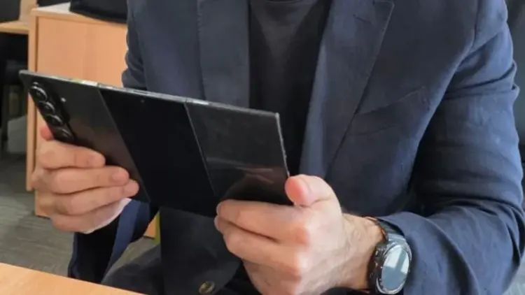 Trong một bài đăng trên LinkedIn, ông Omar Saheb – Phó Chủ tịch Marketing và Thương mại điện tử của Samsung Electronics MENA – chia sẻ hình ảnh về Galaxy Z TriFold. Tuy nhiên, một số ảnh trong bài đăng lại vô tình để lộ phiên bản nguyên mẫu mà Samsung từng thử nghiệm trong quá trình phát triển thiết bị.