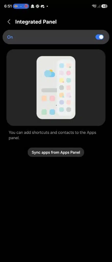Ngoài ra, Home Up bổ sung tùy chọn Integrated Panel, cho phép gộp bảng Danh bạ vào bảng Ứng dụng. Nhờ đó, người dùng có thể giảm số thao tác vuốt khi cần mở nhanh ứng dụng hoặc liên hệ với người khác.