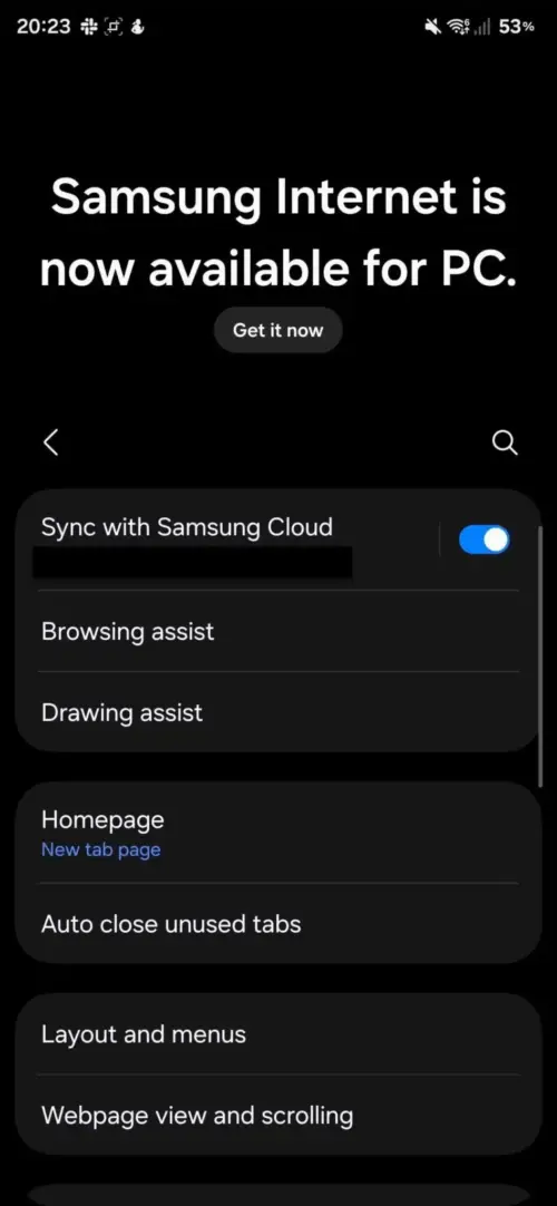 Theo thông tin được phát hiện trong phiên bản beta mới nhất của Samsung Internet trên di động, Samsung đang thêm các đoạn mã gợi ý về phiên bản dành cho Windows. Một thông báo trong phần Cài đặt của ứng dụng xuất hiện dòng chữ “Samsung Internet hiện đã có trên PC”, cho thấy công ty Hàn Quốc đang trong giai đoạn hoàn thiện phiên bản desktop.